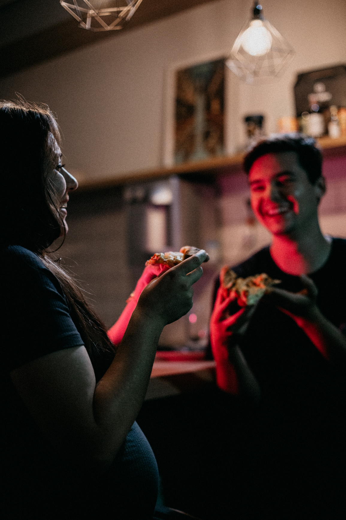 A pizza fez parte da gestação da Pri! Enquanto grávida, eles sempre comiam uma pizza de um sabor, de uma certa pizzaria, tanto que isso